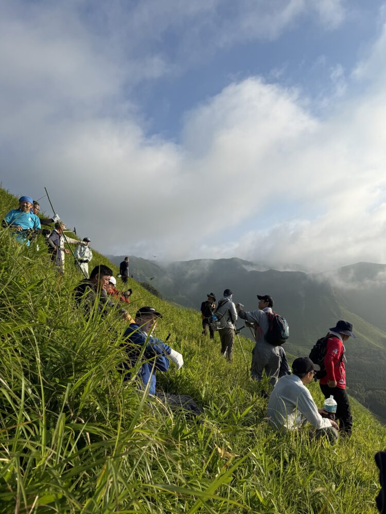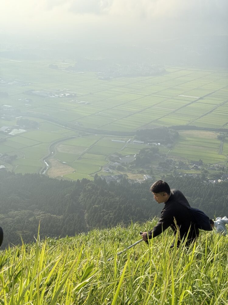 毎年8月、草原の草が青々と茂る季節に、地元の方々「扇切保存会」によって扇形に草を刈る作業が行われています。