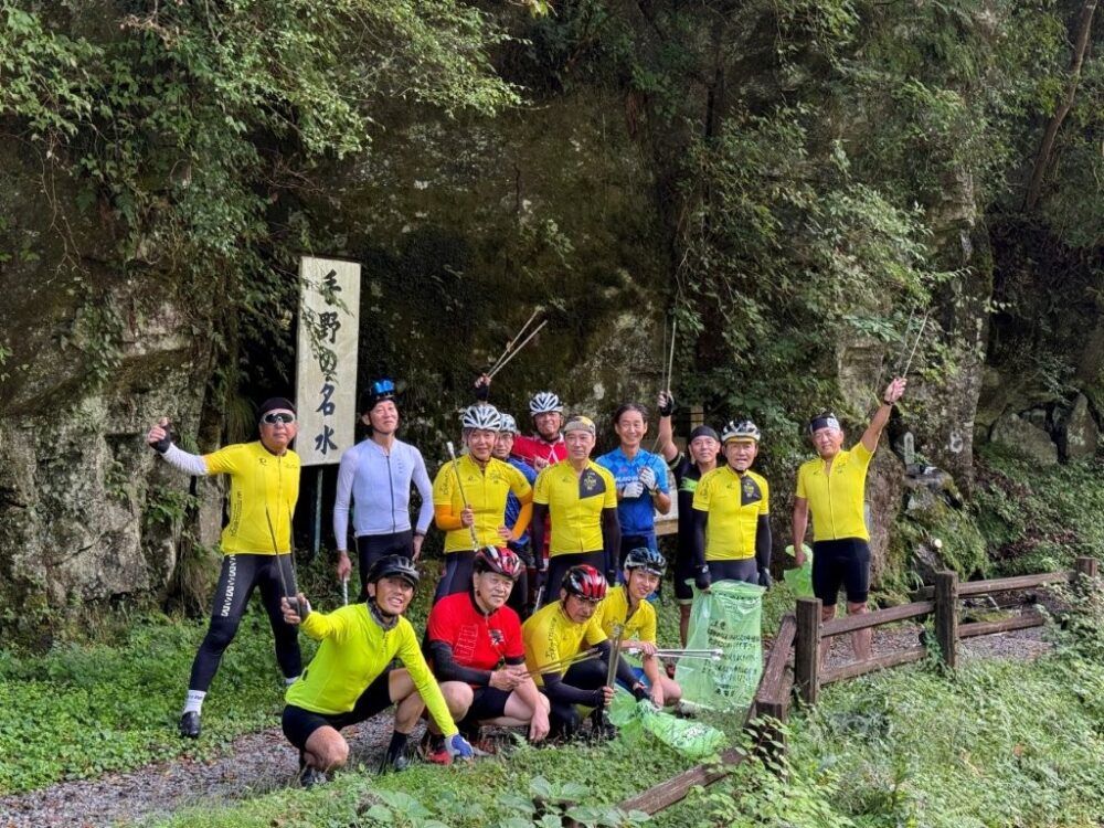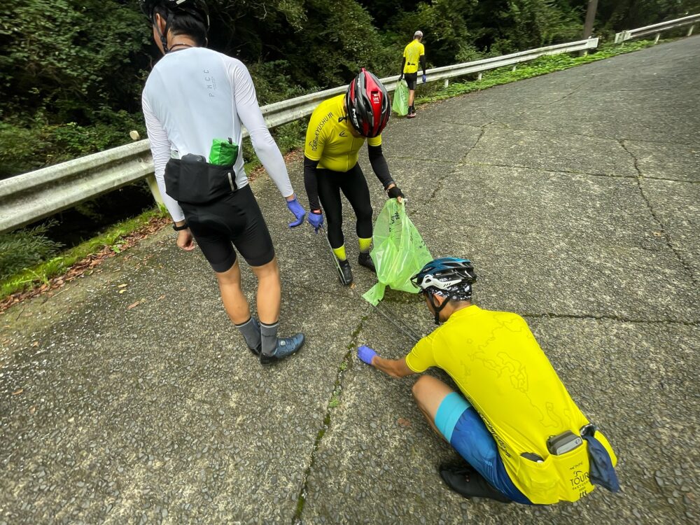6月から始まった「ツールド九州応援ライド」も、いよいよ最後となりました。一流選手たちが通る道を綺麗にしようと、参加者全員で清掃活動を行って参りました。ご覧ください。