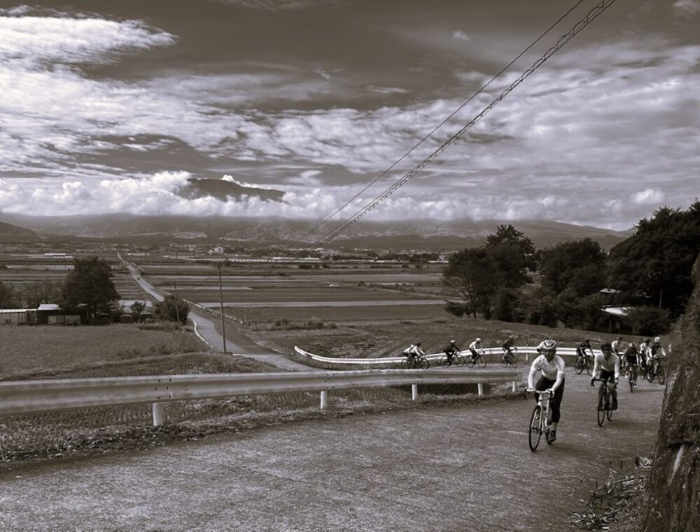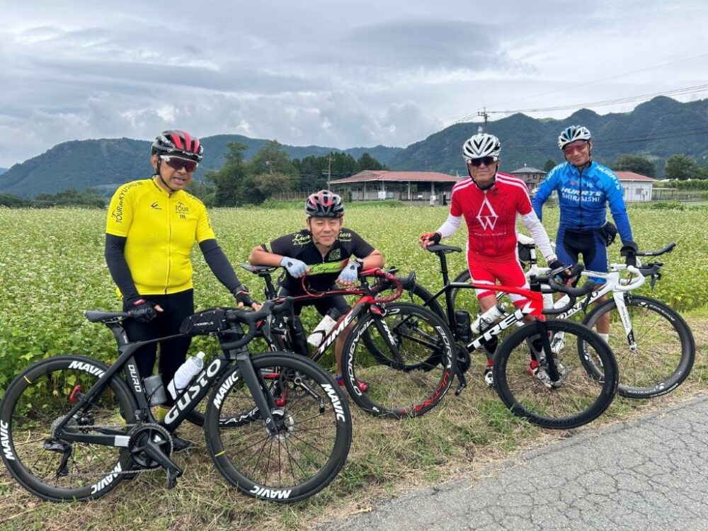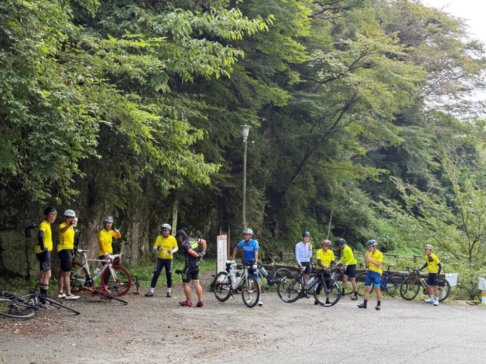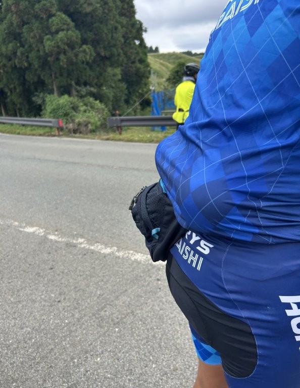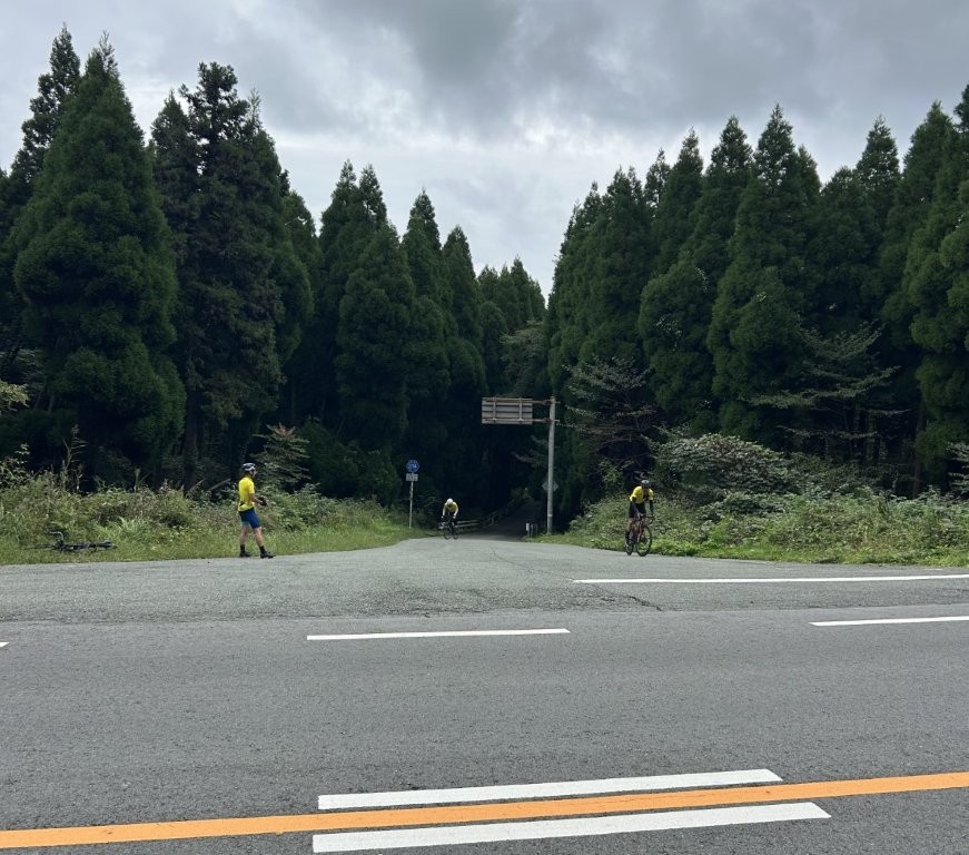ただし、この日の天気は午後を過ぎると怪しく、阿蘇を17年間走っているが雨になりそうな予感。気温も下がってウインドブレーカーをバックポケットに備える時期になり、冷たい雨にみなさんをさらすわけにはいかない。そこで雨雲レーダーを見ながらいつでもターンバックの準備をして、最終的には265号に出たところで行くか、引き返すか判断することにした。