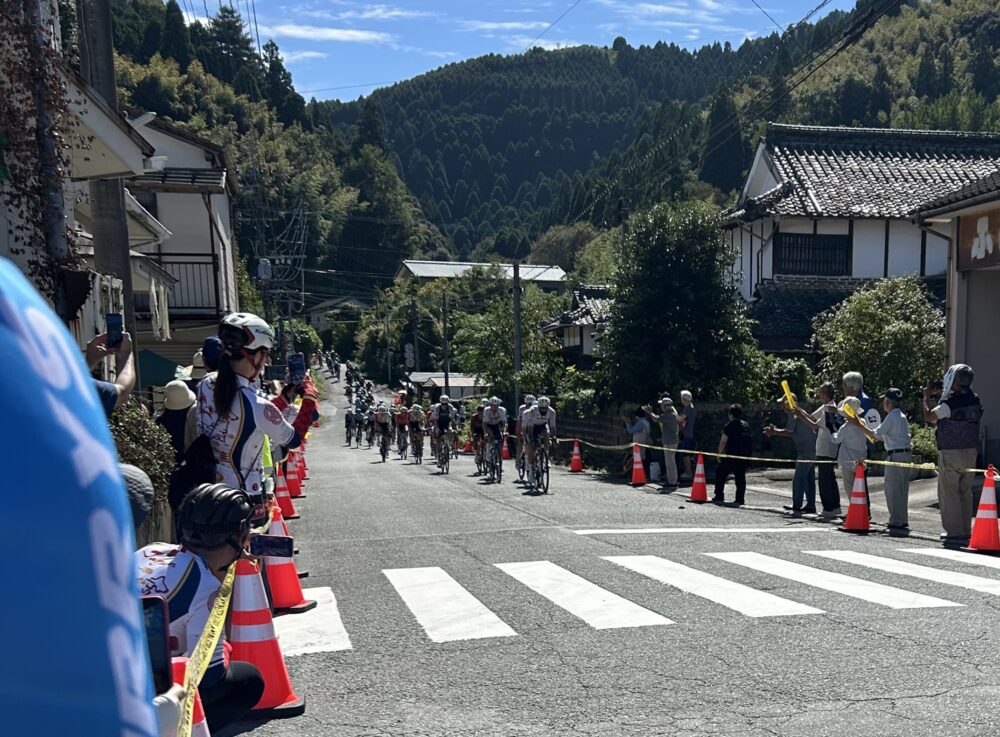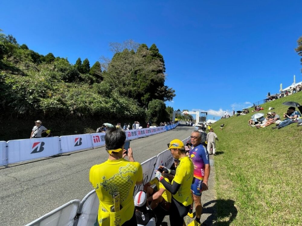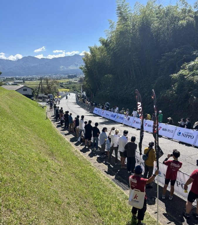ゴールしてから海外の選手は、疲労困憊の上に車両と人混みの中を通り抜けチームバスに戻らなくてはならない。確かに役場入口付近の大渋滞を自転車で通るには安全でないことは間違いない。それと観戦者用の駐輪場が昨年は役場内だったが今回は500mほど離れたところの未舗装の空き地だった。ここに行くにはセメント道の急坂もあり、自転車を置いて歩いて降りる時には、サイクリングシューズなので滑りやすく、自転車乗り目線ではないと多くの方が感じられたと思った。