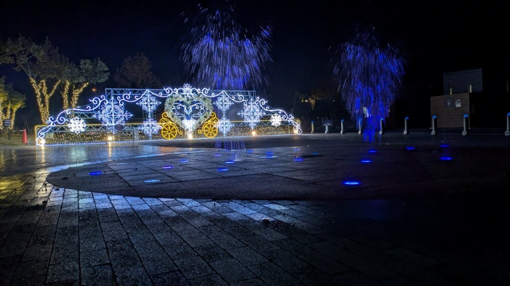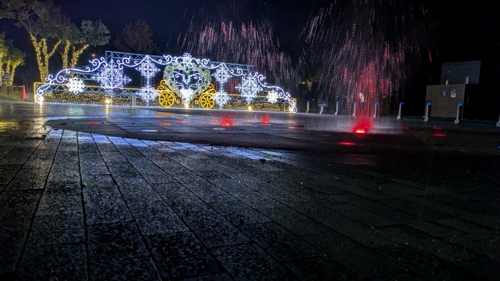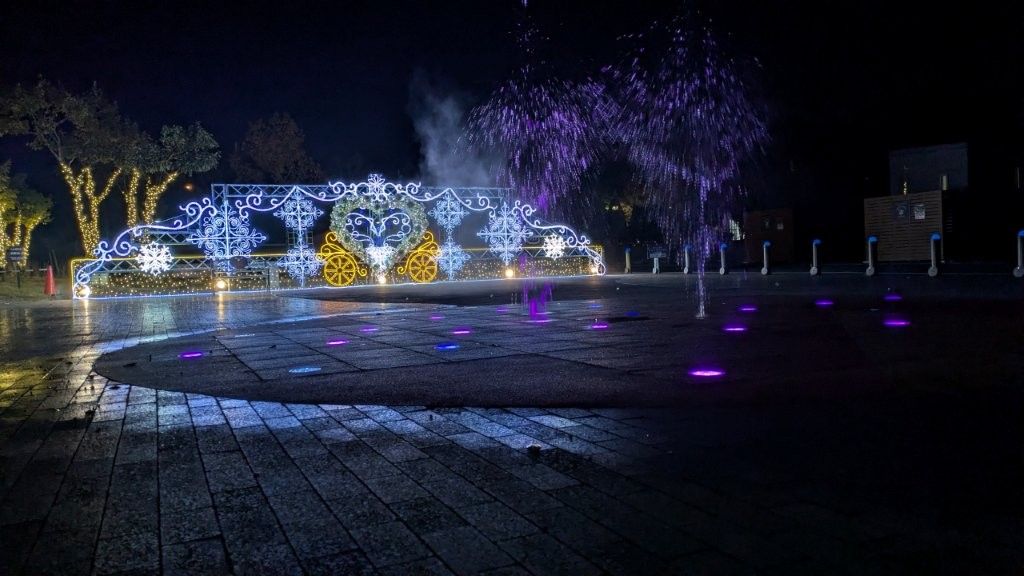 噴水のライトも色とりどりに点灯するのでお好みの色でシャッターを押されてください📸