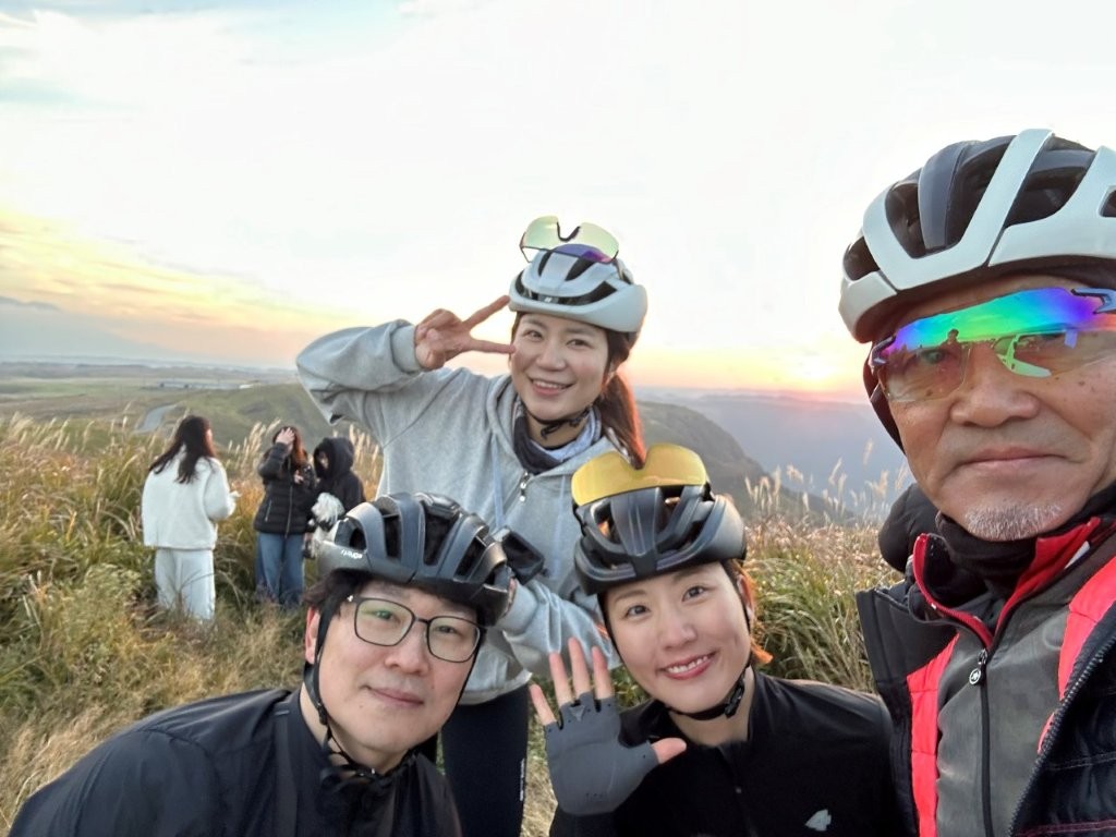 韓国のサイクリストが航空機で快適に福岡県に自転車を持ち込むための新たなサービスとして、航空輸送用自転車ケース「ラウンデル・グリーンパックサービス」が今年の3月から日本で初めて福岡空港で利用できるようになった。そこでこのサービスを韓国マーケットに情報発信するため、韓国のサイクルインフルエンサー4名と通訳を兼ねてラウンデル・グリーンパックサービスを提供するヴィルトゥカンパニー代表のヨンさんが福岡県から招かれて2泊3日で福岡と阿蘇を案内してきた。