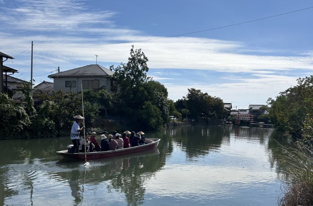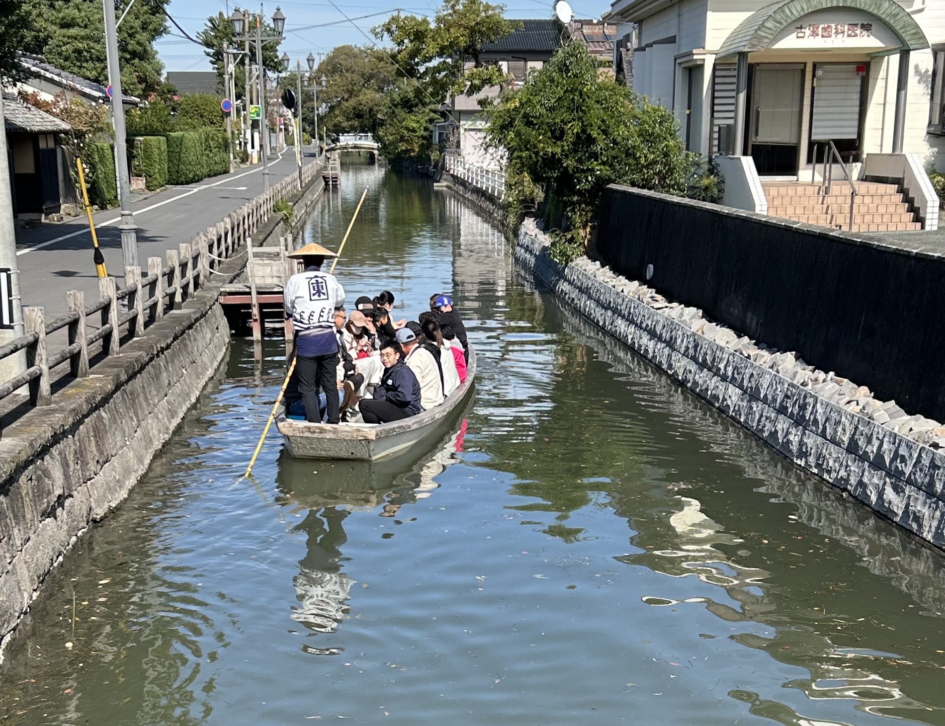 今回のガイドは韓国のみなさんを西鉄柳川駅で迎えるところから始まる。簡単な自己紹介のあとサイクリングをスタートして柳川駅から街中を少し走ると、すぐに柳川の「川下り」が見えて来てみなさんから歓声が上がる。
