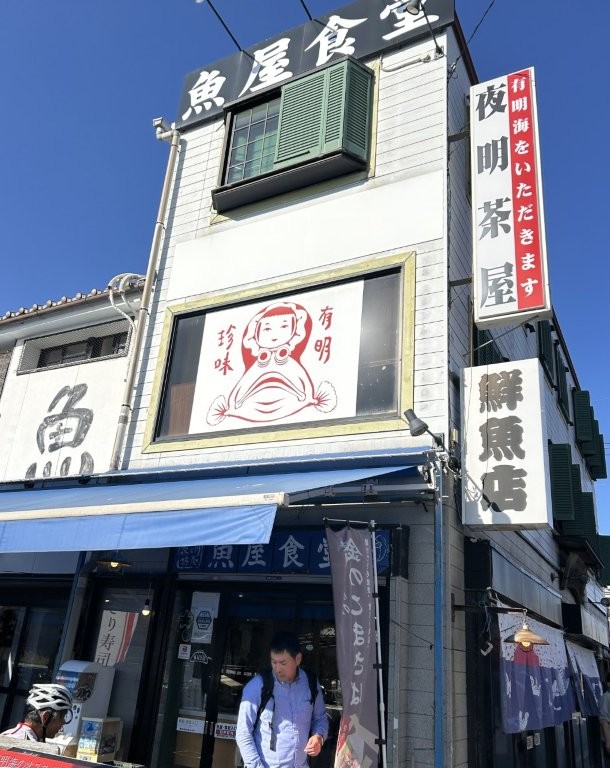 昼食は有明海の幸を提供する「夜明茶屋」を選んだ。ここは筑後市の自転車仲間の高巣さんの友人がオーナーであり紹介してもらった。