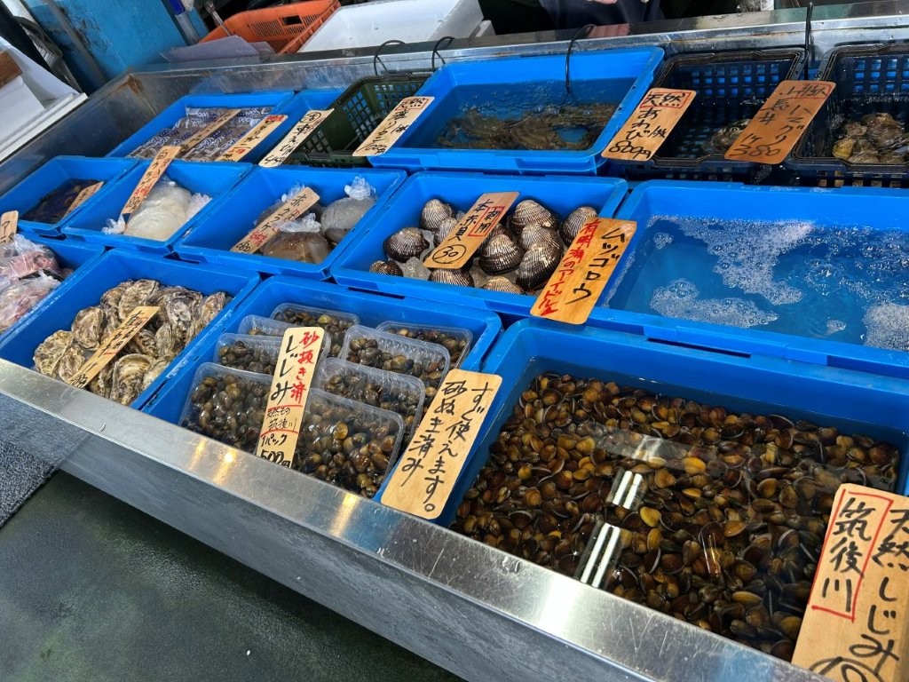 この店は魚屋でもあるので好みの魚や貝類を選んで調理してもらって食べることも出来る。釜山のチャガルチ市場の雰囲気に似た有明の幸にこだわった店なので、そのような注文も面白いが、今回はスタッフと合わせて総勢11名と多かったので定食にされていた。