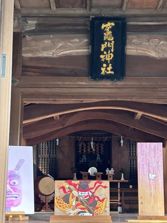 矢部川沿いの車の少ない道はサイクリングに最適、矢部川の水の美しさに感激されていた。そして、この道沿いにある竈門神社に立ち寄った。