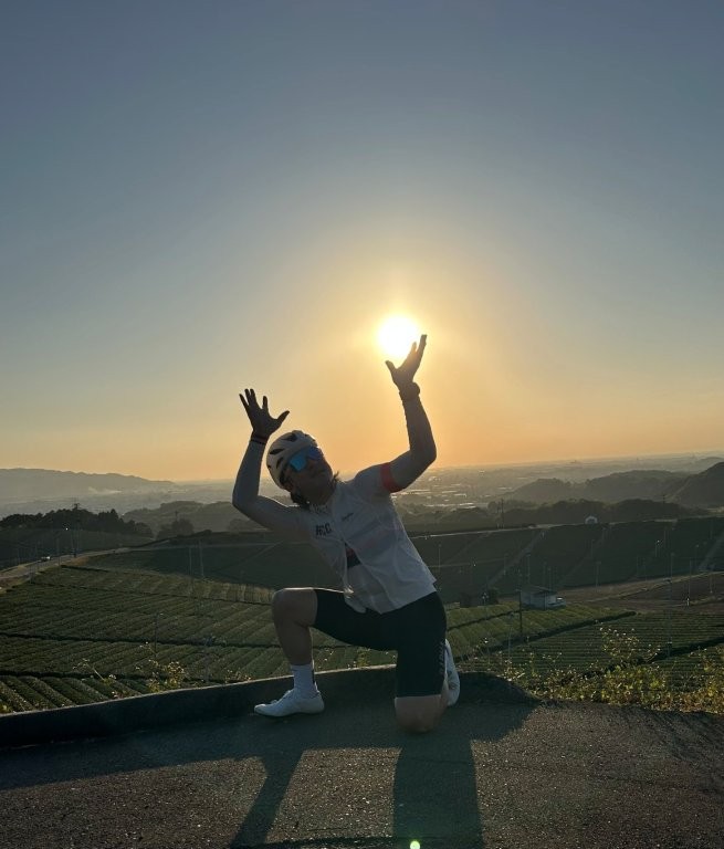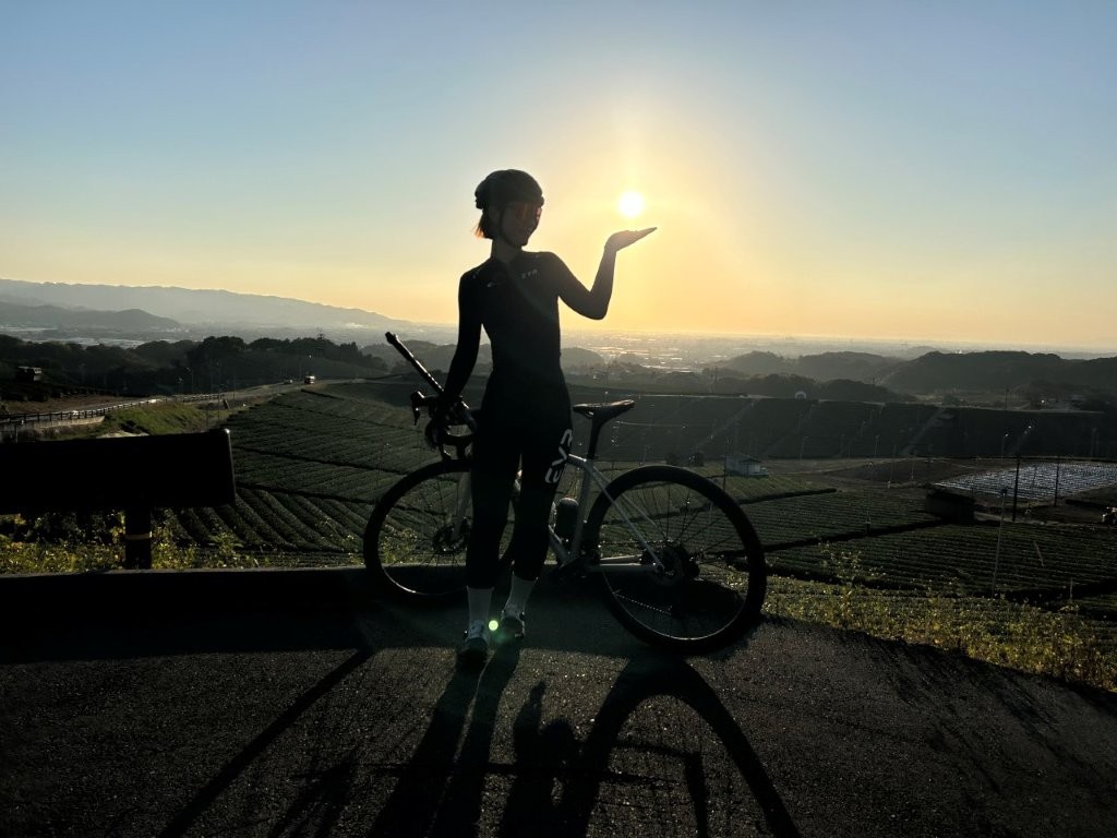 展望台に着くとKeiさんがサプライズで玉露を仕込んで来られていた。粋な計らいだ。八女大茶園で夕陽を見ながらお茶を一服という体験をしてもらった。