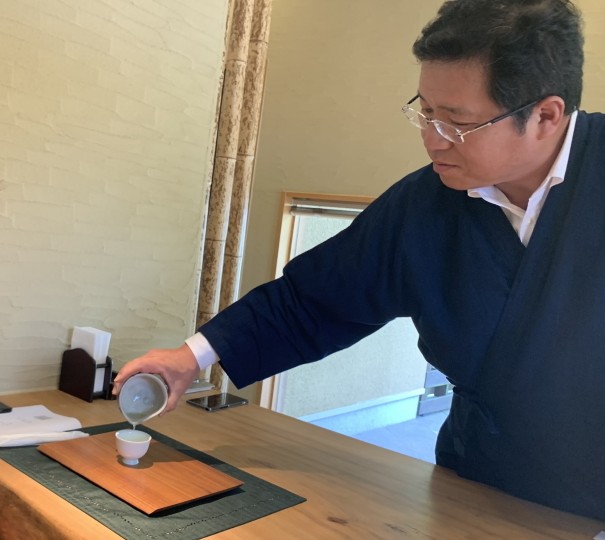 八女伝統本玉露は、濃縮した旨味をすすり茶で一滴の味わいと、最後の焙じ茶は、丸い陶器の香貴の湯のみが手に馴染み、香りが引き立つ癒しの一杯として心を静めてくれた。そのような様々なお茶の飲み方を流儀も作法もなく楽しむことが出来て韓国のみなさんも満足されたようだ。