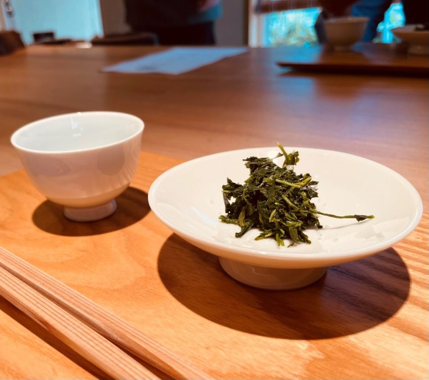 最後は茶葉も頂く。フランスの岩塩とオリーブオイルをかけると不思議な美味しさになる。