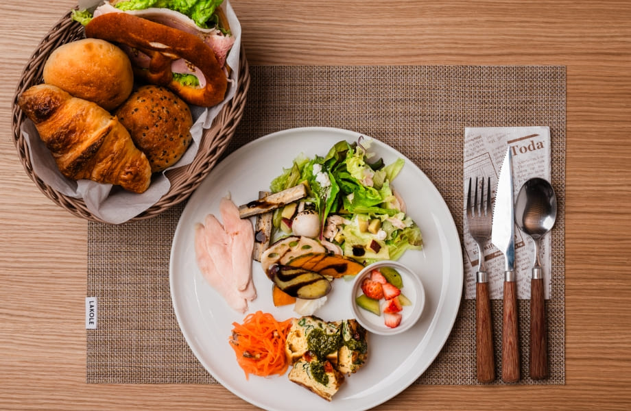 モーニングメニュは「かごもりパンと阿蘇野菜プレート」