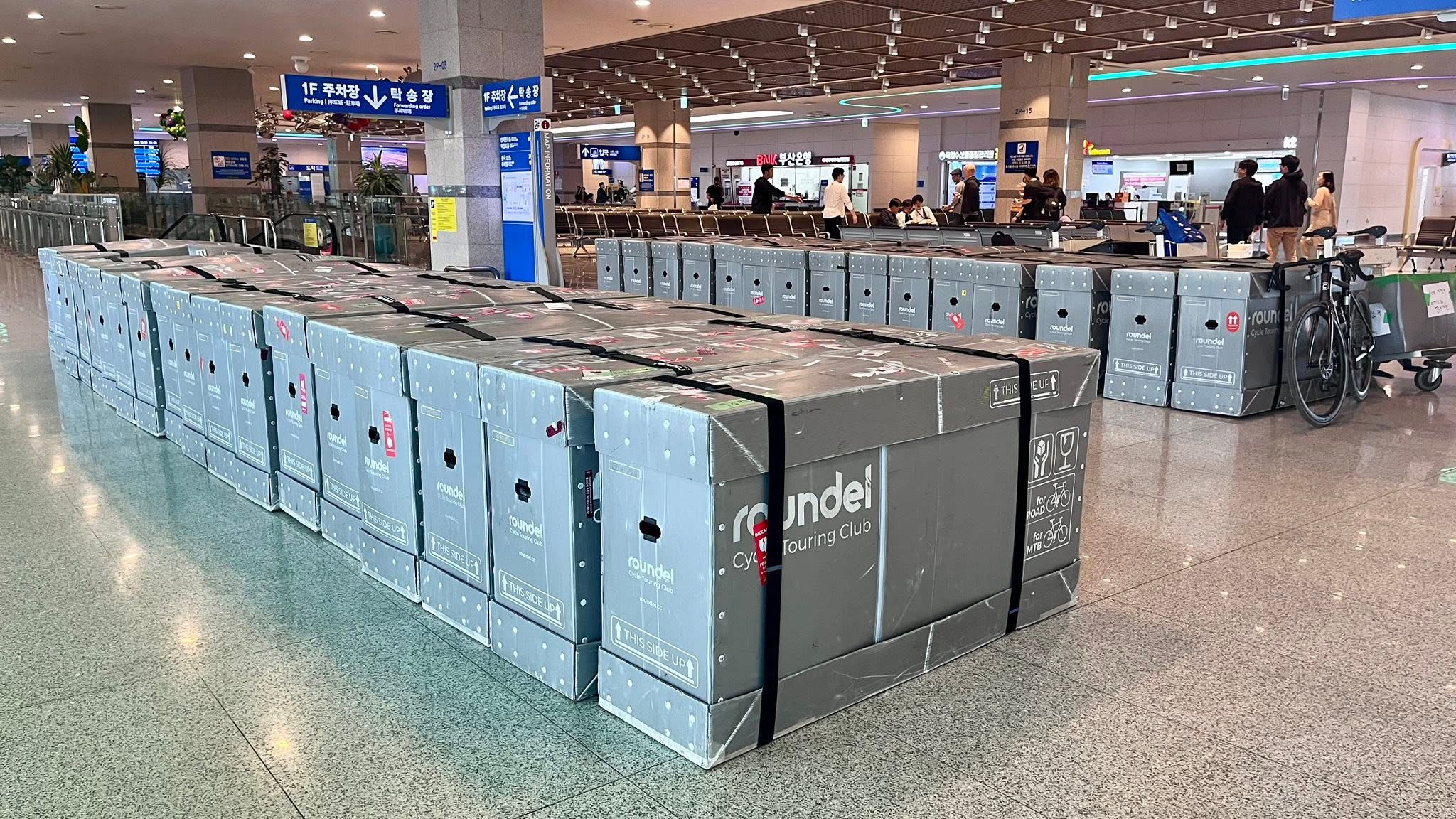 韓国から福岡にはカメリアラインのフェリーで来られるサイクリストが多かったが、昨年の10月からバッテリー発火事故があって電動自転車の船内持ち込み・受託手荷物 ともに受付ができなくなっている。よって航空機による輪行になるのでラウンデル・グリーンパックサービスの需要が高まってくるだろう。