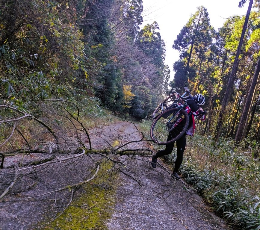 冬はグラベルライドの旬だと思っている。山を走っている時や休憩していると襲ってくる吸血昆虫の蚊、アブ、ブヨ、それに蜂もいなくなる。広葉樹は葉を落とすので木漏れ日になり道を明るいし、見たことがない景色が現れて思わず息を呑む。ただ、落ち葉の絨毯で路面が見えにくいので注意が必要だが、サクサクと落ち葉を踏みながら走るのはこの時期ならではの楽しみだ。そして、もう少し寒が入り雪でも積もればグラベルライドの虜になるのは間違いない。