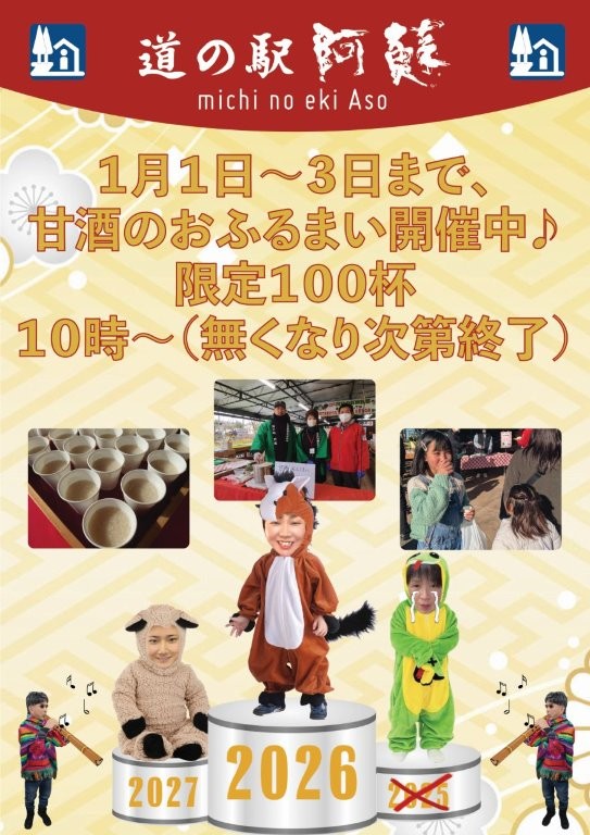 令和8年を迎えてスグのお正月三が日、ご来館いただいた皆さまへ、日頃の感謝を込めまして「甘酒のお振舞い」を開催いたします。