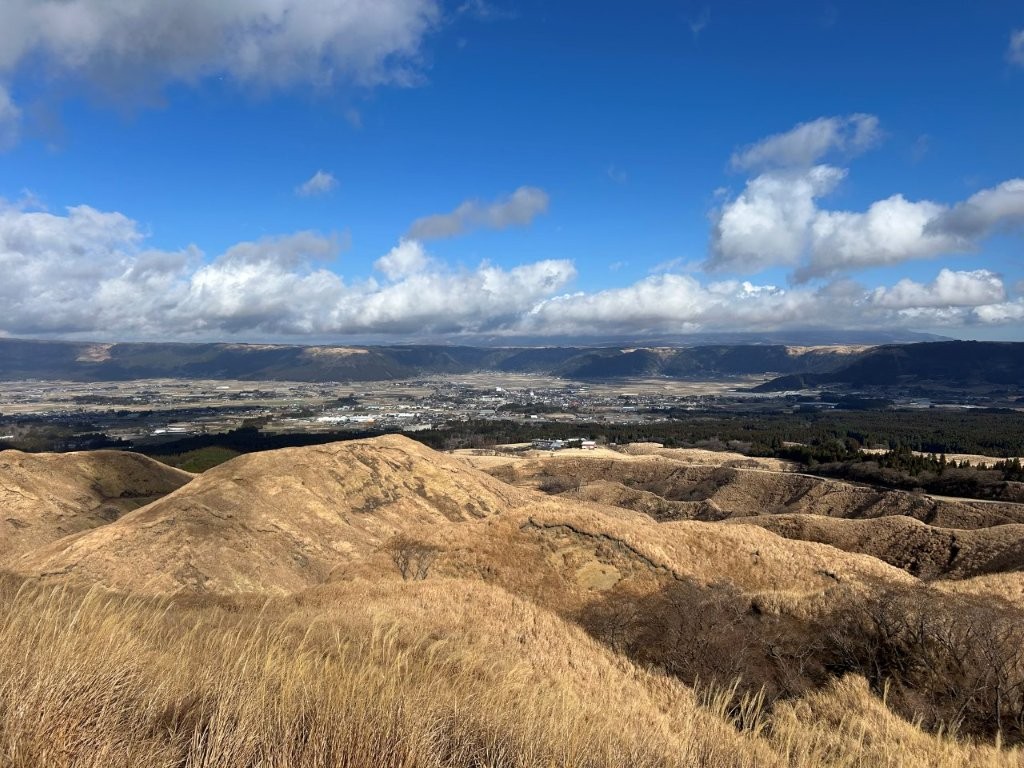 参加された福岡の高巣さん、熊本の近松さん、それに私もだが、前日までは天気のことで不安(寒いと嫌だな)があったが、雲の切れ間から垣間見える冠雪した高岳と、青空に照らされる阿蘇谷を眺めていると、「来て良かったですね」と脳裏に現れた悪魔のささやきに打ち勝った喜びを分かち合った。