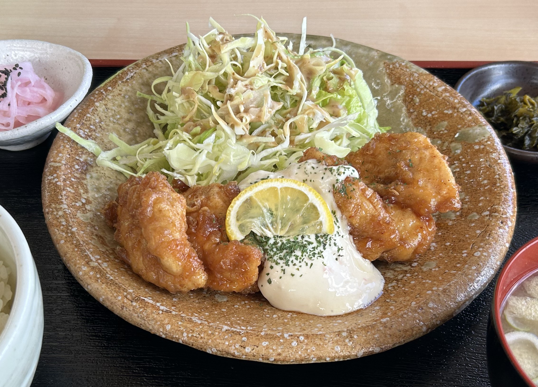チキン南蛮はかなりのボリューム、どんぶりご飯は山盛りで、今の時代うれしいことだが私には多すぎた。