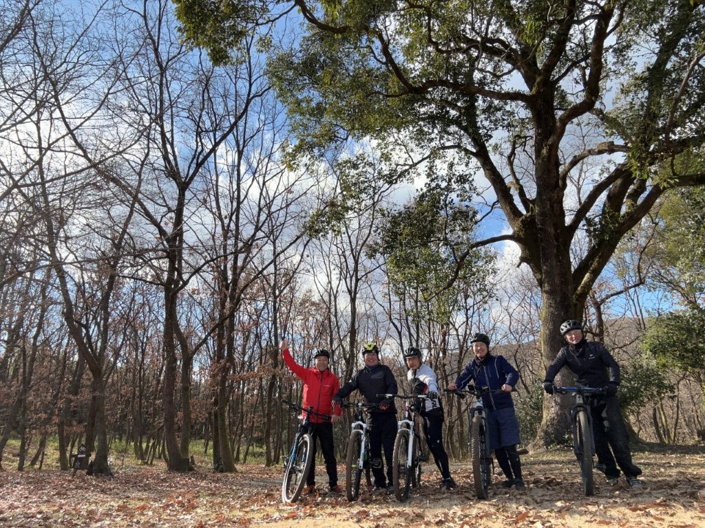 前日からキャンプされていたのは1組だけ、ストーブ付きのテントから白い煙が暖かそうでこの日も泊まられようだ。冬は葉を落とし見通しが良くなり、春には眩しいばかりの若葉、夏は木陰を作ってくれるクヌギ林の中に整備された「菊鹿 みんなの森」は、前泊や後泊して焚き火&BBQ&MTBがお似合いだ。