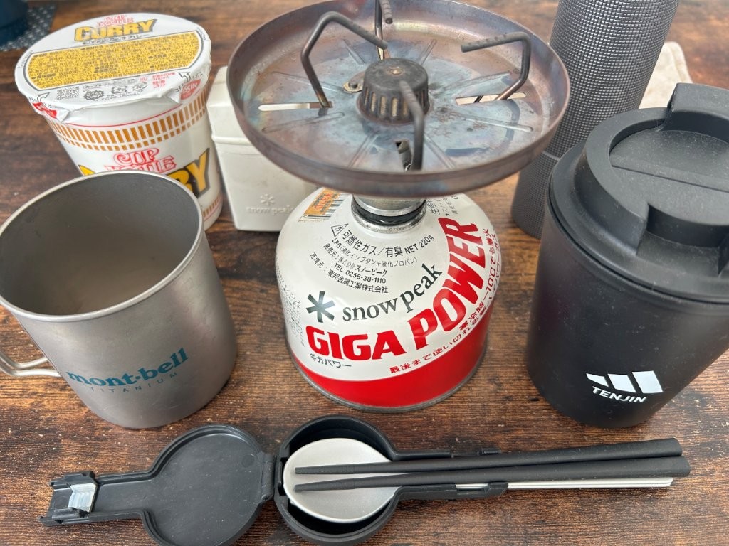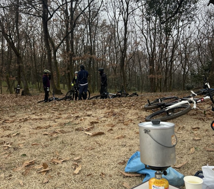 私は20年振りにキャンプ道具を倉庫から出して、カップ麺とコーヒーとお菓子、それに家内が作ってくれたおにぎり1個を持って行った。バーナーをセットしてお湯を沸かすと、湯気立つカレーヌードルとスティクコーヒーがこんなに美味かったのかとちょっと感動だった。冷たい弁当とは大違いで贅沢な気持ちになれた。このようなアウトドアを満喫する楽しみ方は、アメリカ生まれのグラベルバイクやマウンテンバイクとの相性は抜群にいい。