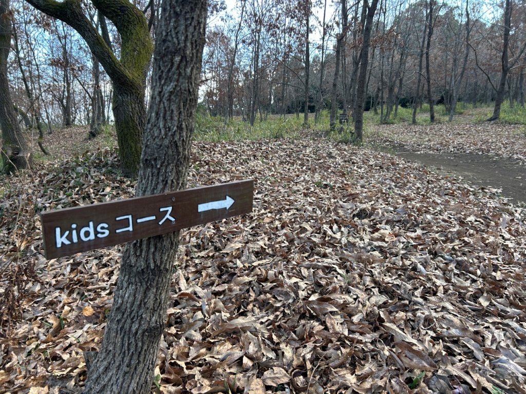 キッズコースはクヌギ林の平坦なところが多く楽しく走れて初心者におすすめだ。