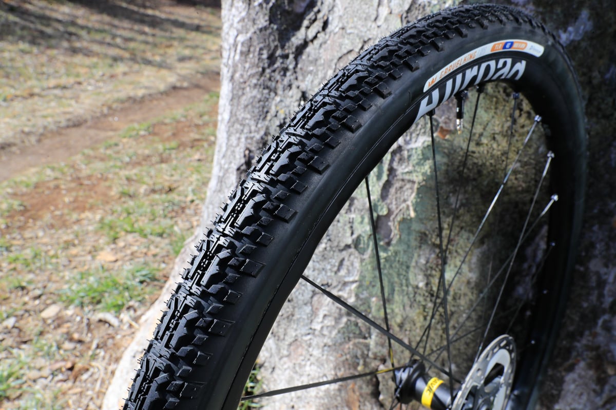 クリンチャーは何度かパンクした人がいたがチューブレスは1度もなかった。幅は40~45C。タイヤの種類は、泥や砂利をしっかりとキャッチするため、未舗装路での走破性が高いブロックタイヤ、もしくは舗装路にも未舗装路にも対応するセミスリックタイヤ。これは好みに分かれるところだが、ある程度ノブ(溝の深さ)がないと他の人に付いていけないので、前輪はブロックタイヤで後輪はセミスリックタイヤという選択をしている人もいる。