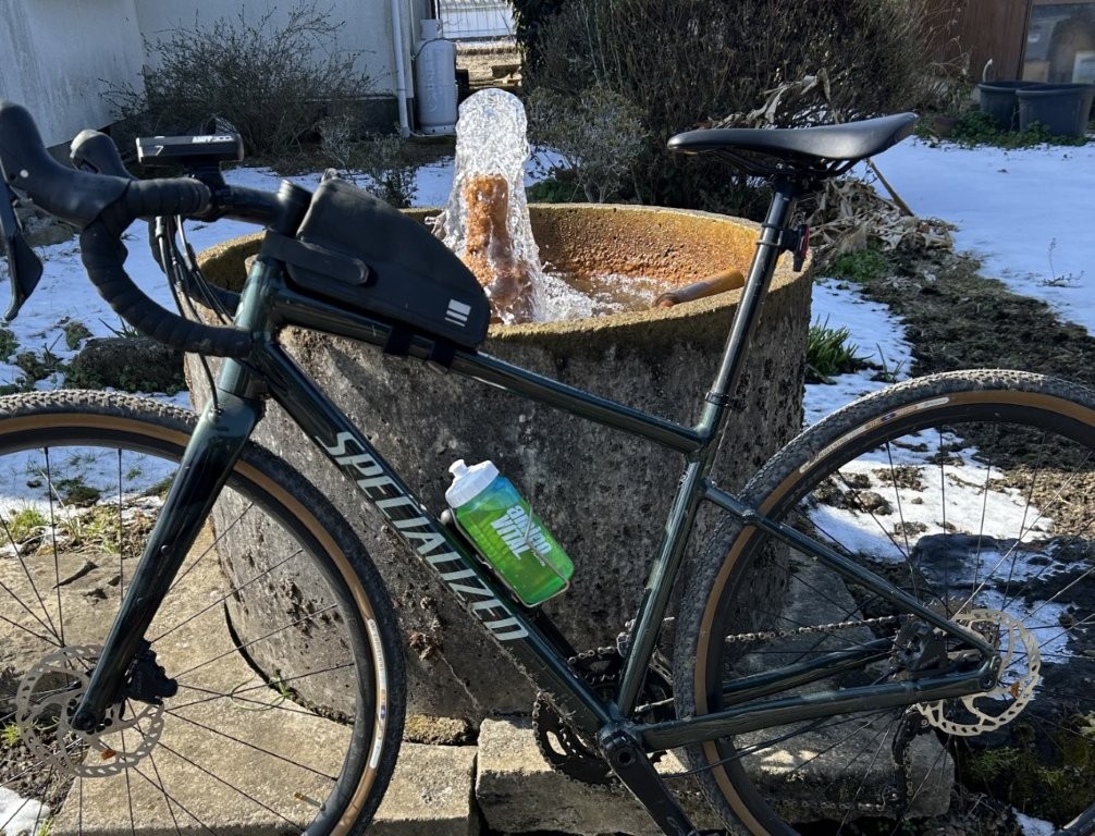 雪の阿蘇グラベルライドの感想として、雪の林道は軽トラックの踏み跡がある場合、凍った段差になっているところがあるので油断できない。山水が流れているところはアイスバーンになって要注意。雪が深い上りは後輪が空転しないようトルクと重心のバランスが必要だ。低速でバイクをコントロールしながら進むことで、高い達成感とチャレンジ精神を享受できる。幅広のタイヤと頑丈なフレームで未舗装・悪路はもちろん、雪の林道にも負けない走破性は感動だった。まだまだスノーライドのチャンスはある。グラベルバイク、買って損はない。