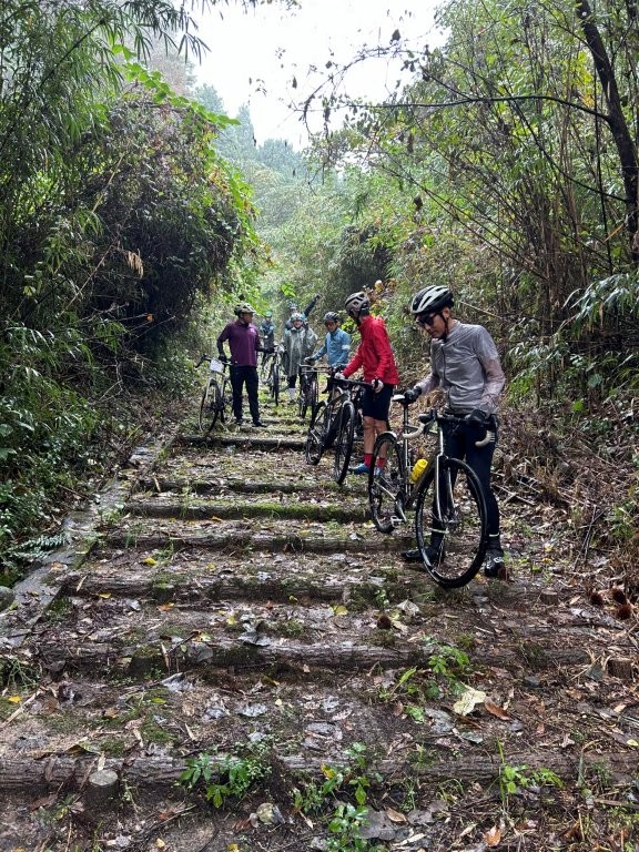 以前撮った写真だがこのように階段部分は土で段差はそれほどない。MTBは行けるがグラベルバイクで降りた人は数名だった。しかし、この日は久米さんが何の躊躇もなく階段降りされると、よしたまさんも前田さんも後に続かれた。私は途中まで、星さんは安全第一に歩きだったが、降り方を習えば行けそうな感じで難易度は少し高いがコースのアクセントには良さそうだ。