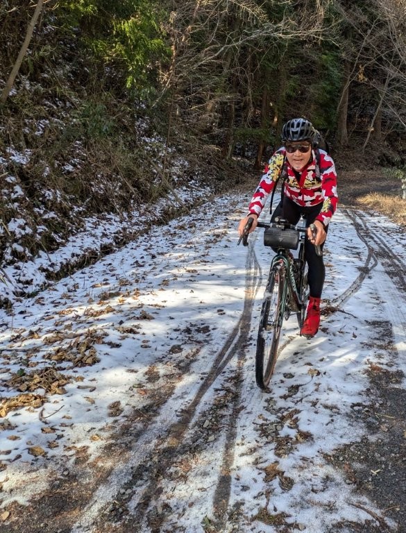 豊後街道も雪が残りいつもとは違うグラベル体験ができた。