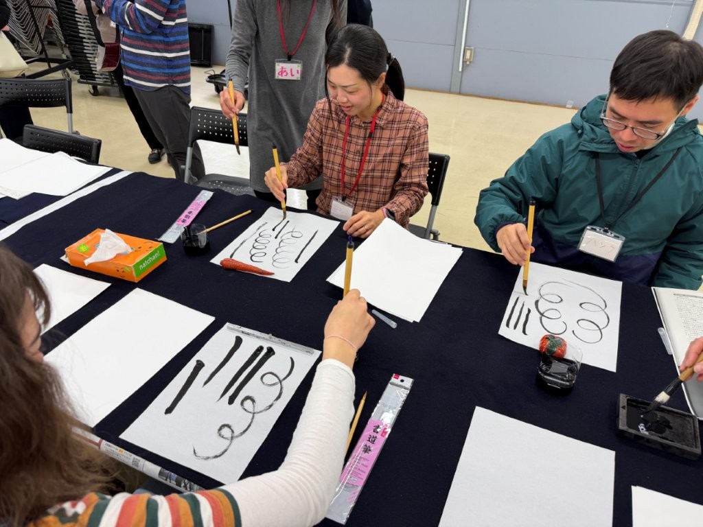 「七転八起」「昇」「平和」「謹賀新年」「達成」と、初めて筆で書いた方もいらっしゃいましたが、とても素敵な字を書いていただけました(*’ω’*)