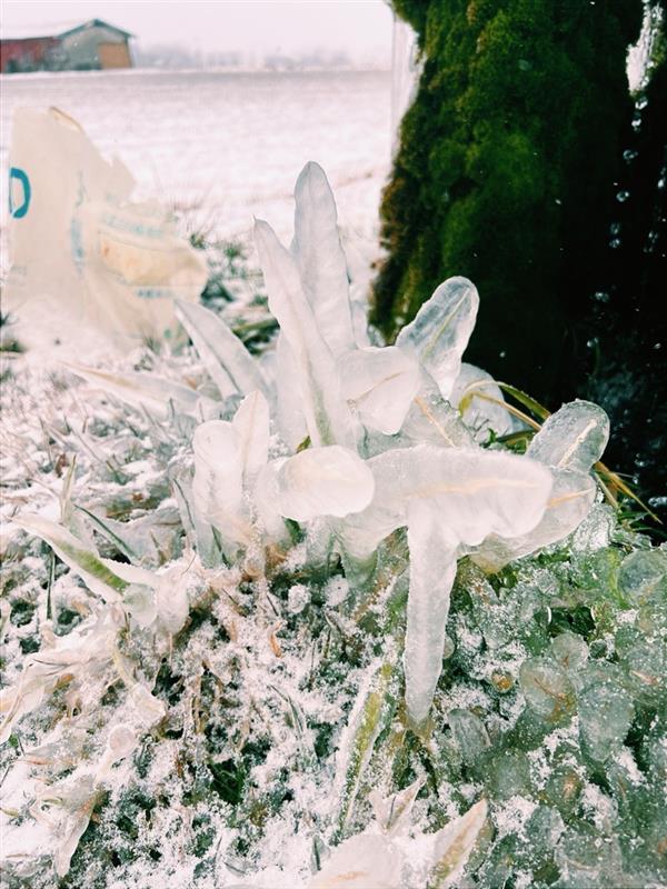湧水が湧き出ており、その下には氷柱を纏った雑草が🌱