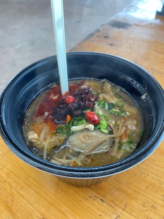 ヨシミちゃんが温まるよう酸味と辛みが美味しい中華料理のサンラータンを販売されていました。