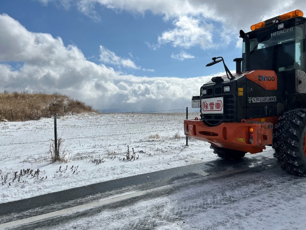 ミルクロードに入った時点では道路にほとんど雪がなく不思議に思っていたら、大観峰方面から菊池渓谷方面へ向かう除雪車が何台も行き交っていました。