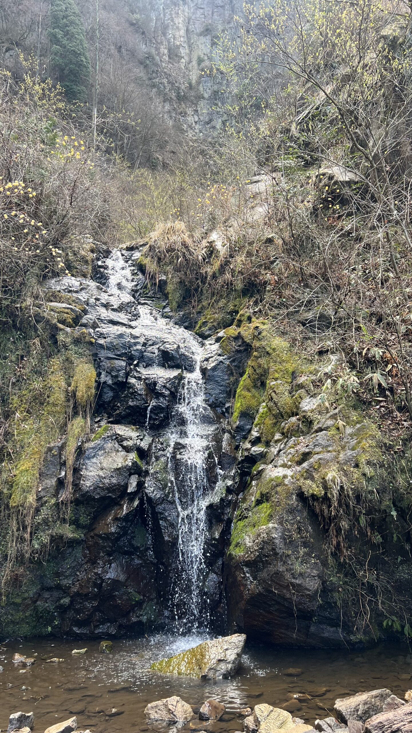 駐車場から徒歩20分ほど、アップダウンの激しい曲がりくねった道を超えた先に見えるのが「古閑の滝」。しかし、春に見えるのはそれだけじゃないんです…。古閑の滝のすぐそばに「ミツマタの群生地」があるんです…!!!