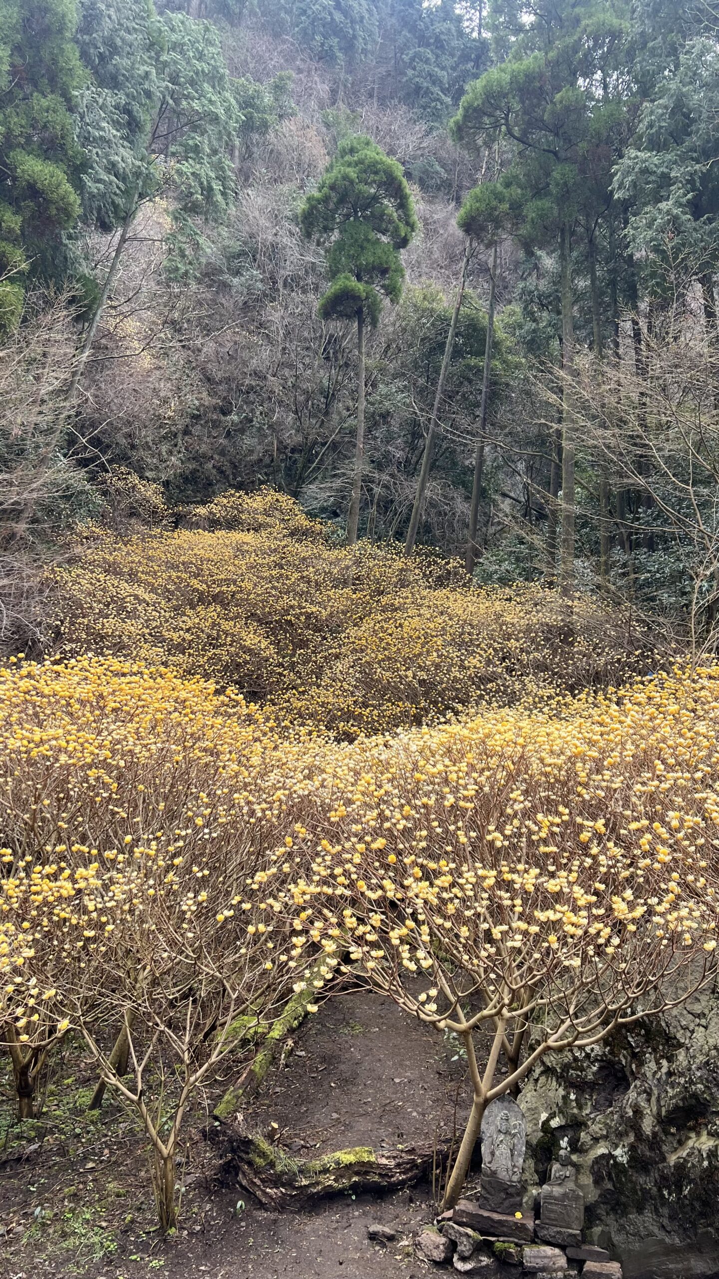 可愛らしい黄色いお花に甘くて柔らかい優しい香り。そして何より、阿蘇の自然に恵まれた古閑の滝ならではの木の高さ!!通常は膝くらいの高さが多いといわれていますが、ここで見られる木は阿蘇の自然が豊かだということもあり、通常よりも木が大きく育っているそうです。