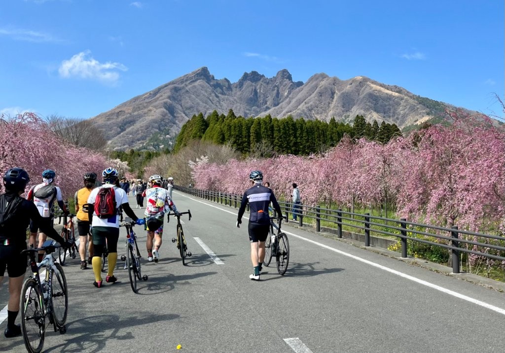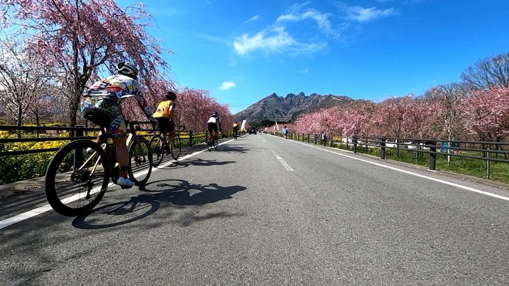 今回の花見ライドで選んだ三箇所、長陽駅、観音桜、サクラミチを阿蘇五岳を逆時計回りにつないだコースは、走ってみてあらためて良さを実感した。阿蘇谷では阿蘇五岳の北側の表情を、南阿蘇では南側の表情を、いずれも左手に眺めながら進み、高森からは五岳を正面に捉え、そしてフィナーレでは、五岳の中でも特異な山容を持つ根子岳の“懐”へと入り込んでいく。この視点の移り変わりが非常に印象深かった。