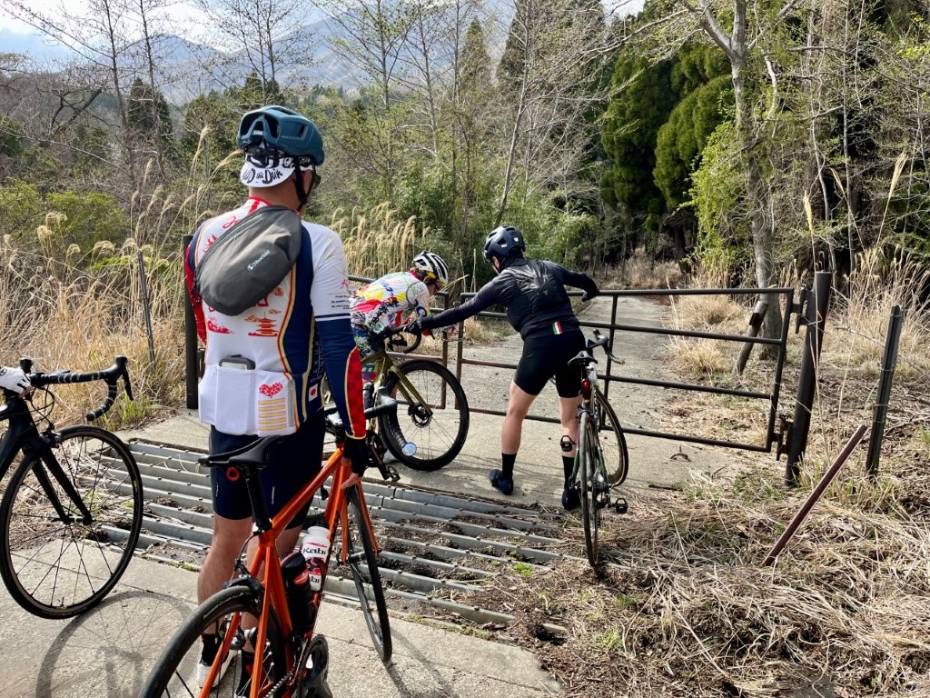この日は全員ロードバイクだったため、細くて滑りやすい路面に気を配りながら慎重に進んだ。そのため写真は撮れなかった。井手は周辺の草刈りと、井手の掃除のためと思うが水が流れていなかったが、普段ではあり得ない道にみなさん驚きつつも楽しんでいたように思う。