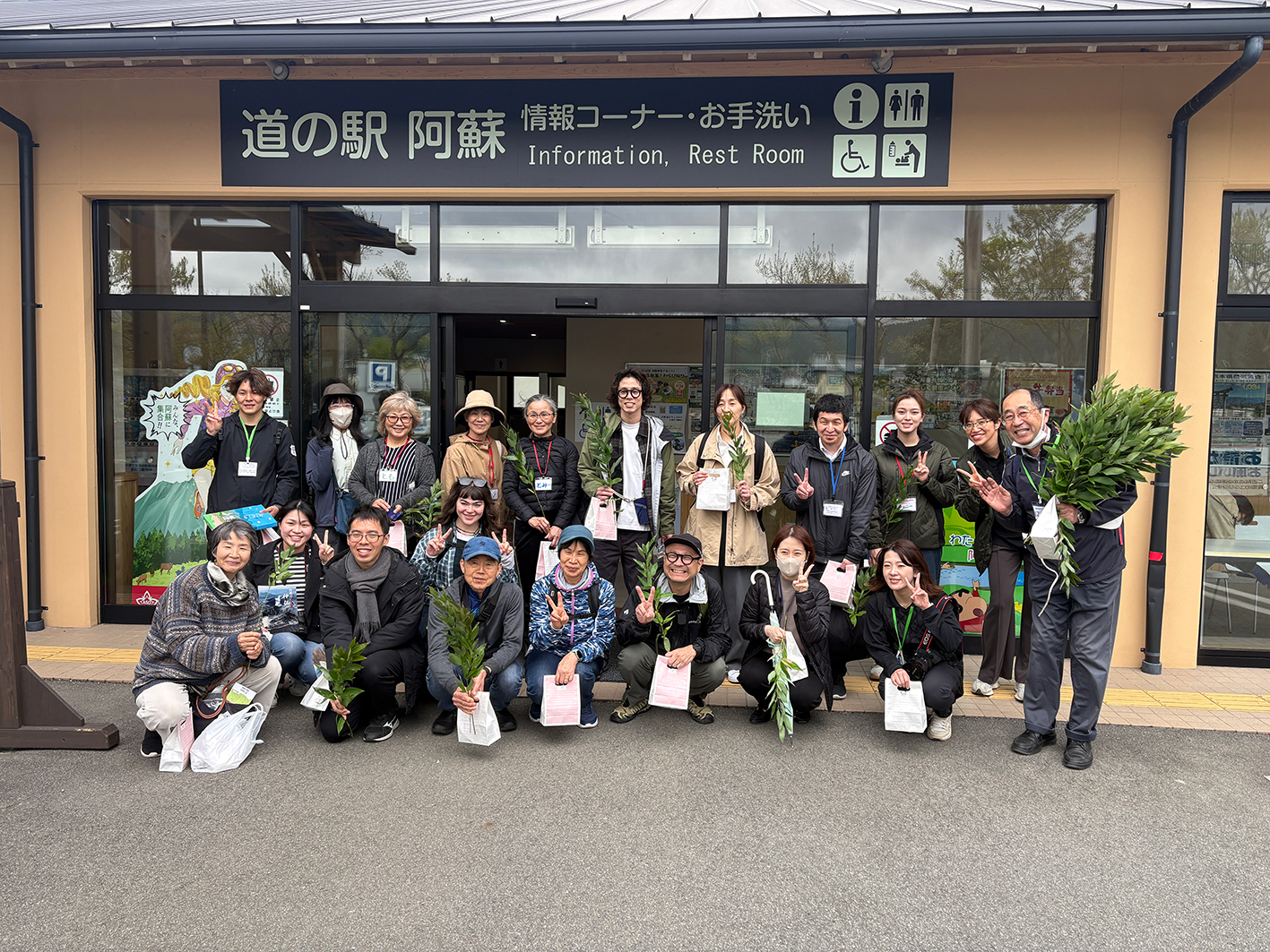 観音笹を貰ってご満悦の道の駅阿蘇💛山本理事長💛