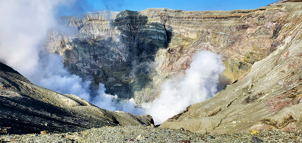 The Nakadake Crater is one of the most prominent features of Aso, an active volcanic located in Aso-Kuju National Park in Kumamoto Prefecture, Japan. Nakadake and the Aso mountain range is located inside the Aso Caldera, one of the largest volcanic calderas in the world.