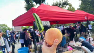 Finally, the midway rest area ! People lined up to stamp their event cards, refill water, and taste local snacks—fresh tomatoes and pickled cucumbers with wasabi from local farmers. Refreshing and energizing! After a short break, it was time to keep moving.