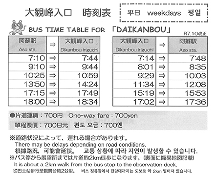 By car/taxi – approx. 26 minutes drive from Michi no Eki Aso. (Free parking available at Daikanbo)
