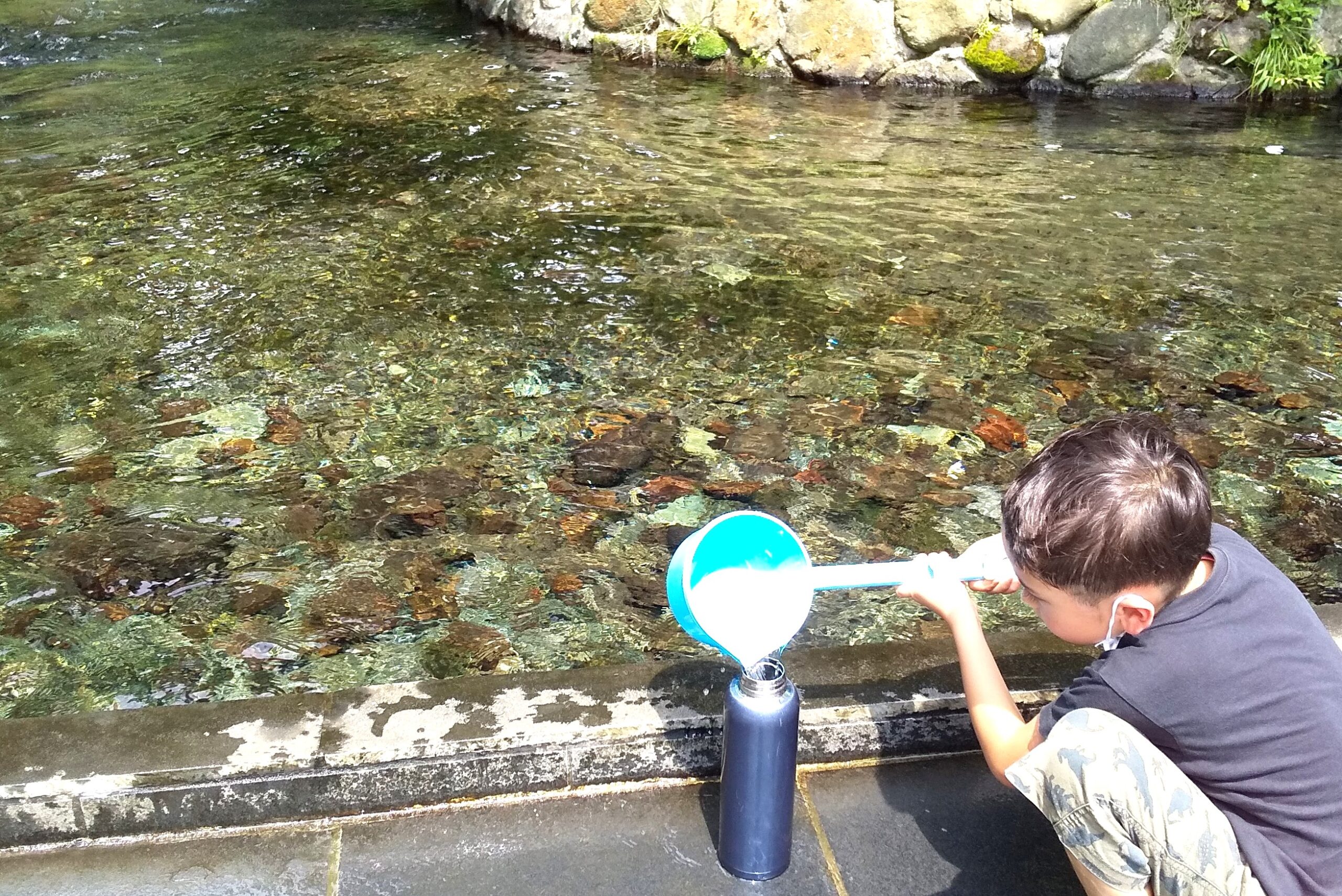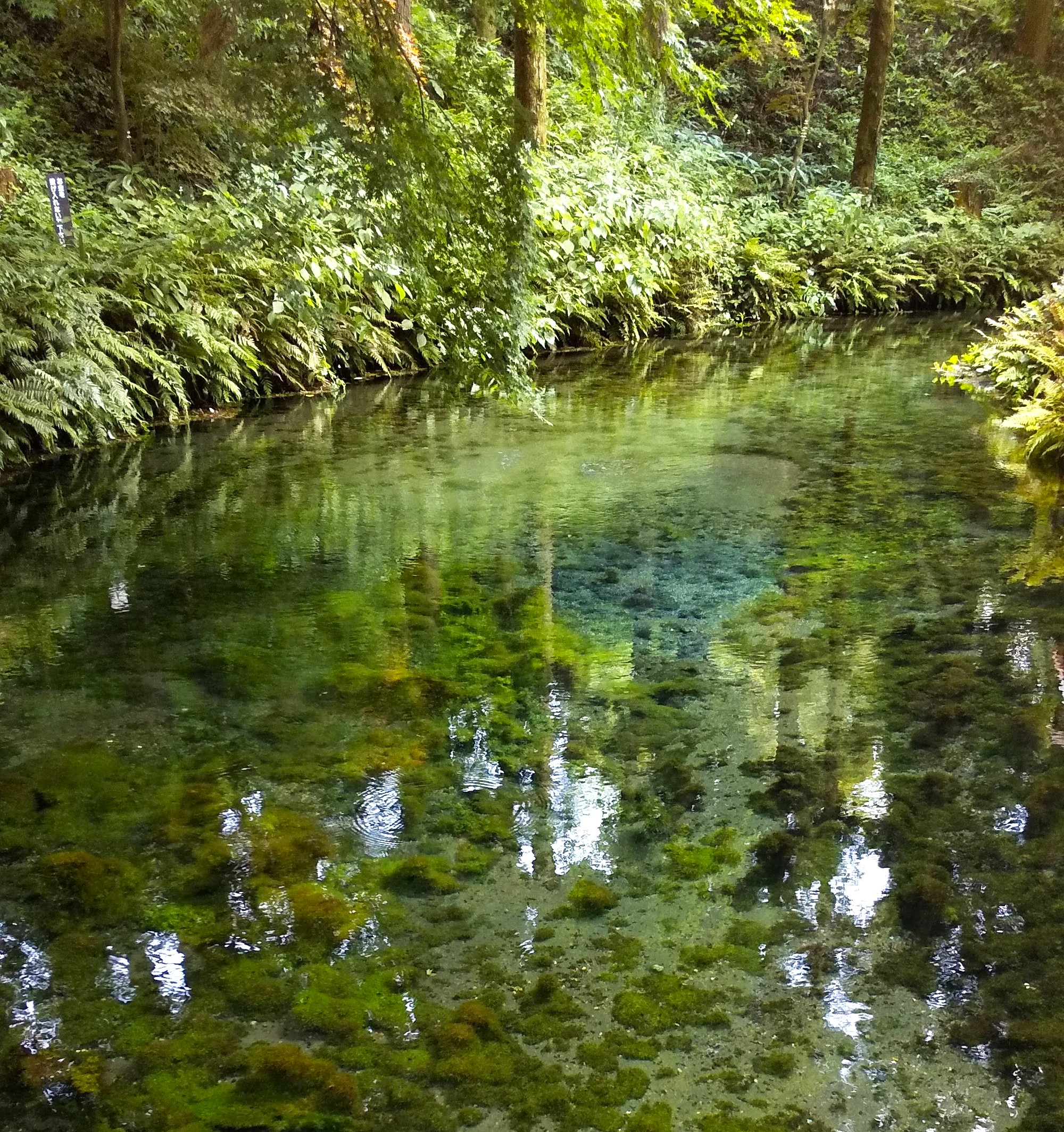 The source of the Shirakawa River, where about 60 tons of clear spring water flow every minute.