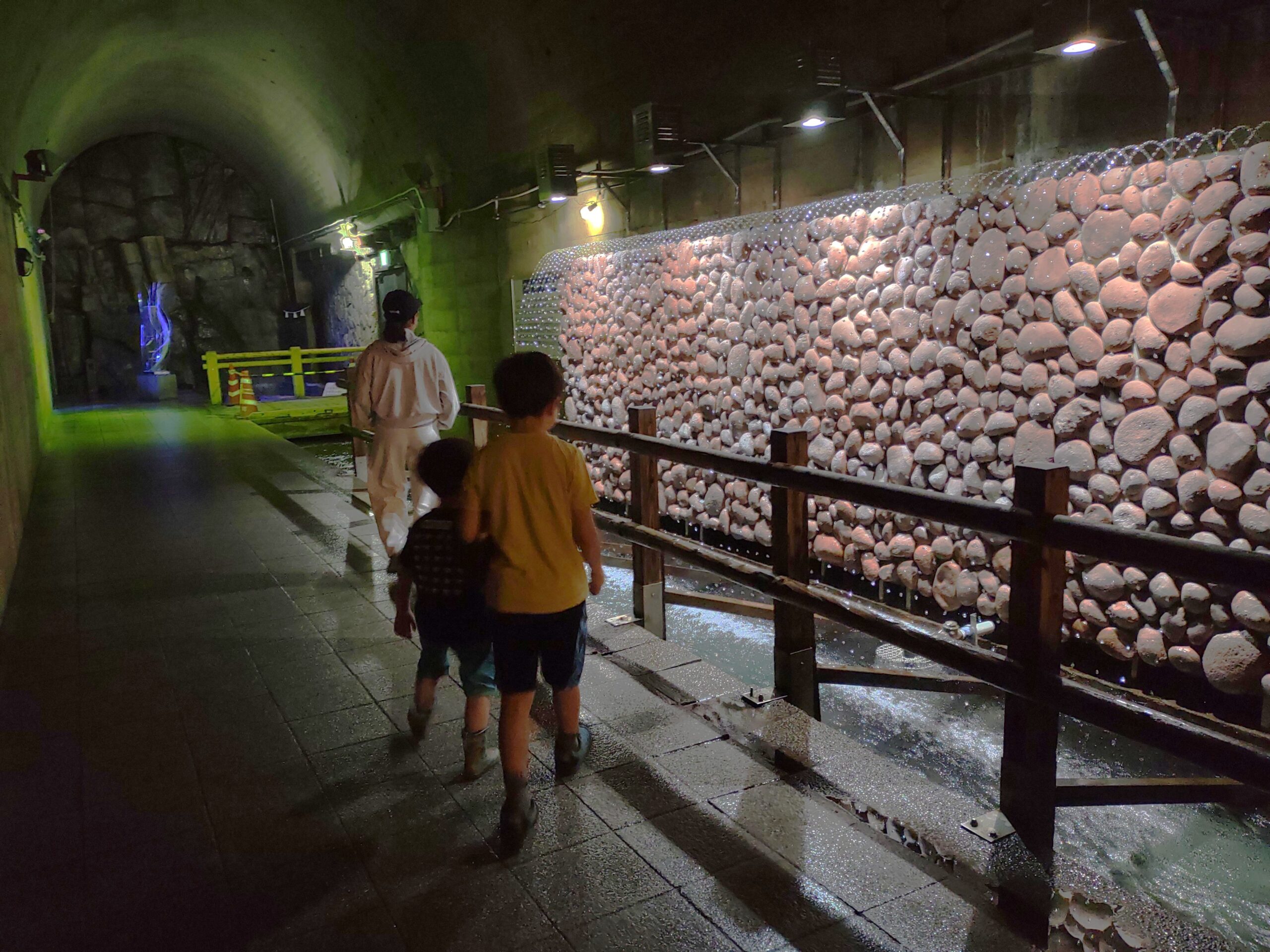 A tunnel originally excavated for a planned railway project. Construction was eventually abandoned after an unexpectedly large amount of spring water was discovered, and today the space has been transformed into a unique water park.