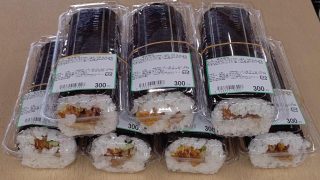 Here at Michi-no-Eki Aso, we hear that the vendors who regularly prepare delicious boxed meals will be offering Ehomaki again this year. Although today is still one day before Setsubun, I already spotted some on sale. One in particular caught my eye: a perfectly sized Ehomaki made with Aso’s famous Aka-ushi (Aso brown beef).