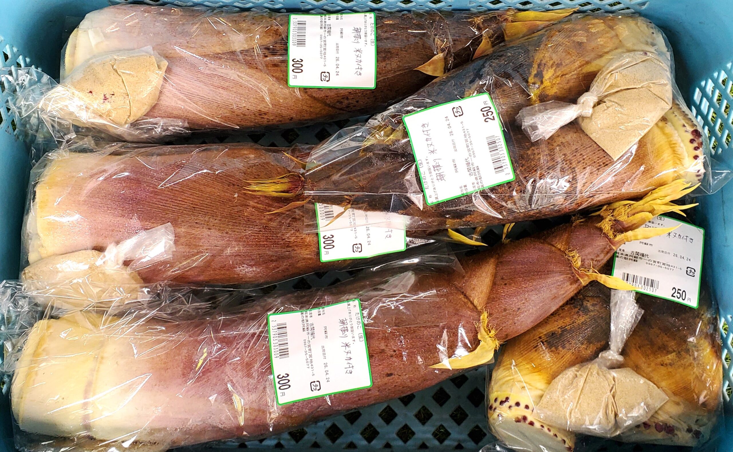 It would be great if everyone had a bamboo grove in their backyard, but that’s not always the case. If you’d like to try, you can still find plenty of fresh bamboo shoots at the vegetable section of Michi-no-Eki Aso today. Some are even sold with rice bran, making preparation easier.