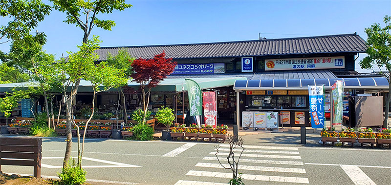 正面に雄大な阿蘇五岳を望むことのできる熊本県阿蘇市にある道の駅。季節の野菜や果物をはじめ、精肉や乳製品、スイーツ、手作りのお弁当など阿蘇の特産品が豊富です。施設には、阿蘇に自生するコナラ等を植栽し四季を感じる演出やその木々の間から風景を見せる工夫など阿蘇の良さが実感でき何度でも訪れたくなる場の創出を目指しています。また、阿蘇市の情報発信拠点として館内には観光案内窓口を設置し、観光情報や交通情報、地域情報などを専門スタッフが日本語、英語、中国語でご案内しています。その他、サイクリングやトレッキング、地域散策など阿蘇を満喫できるイベントを随時開催しています。