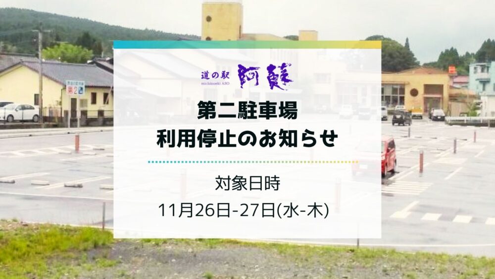 イベント開催に伴って、道の駅阿蘇の第二駐車場が利用停止となります。