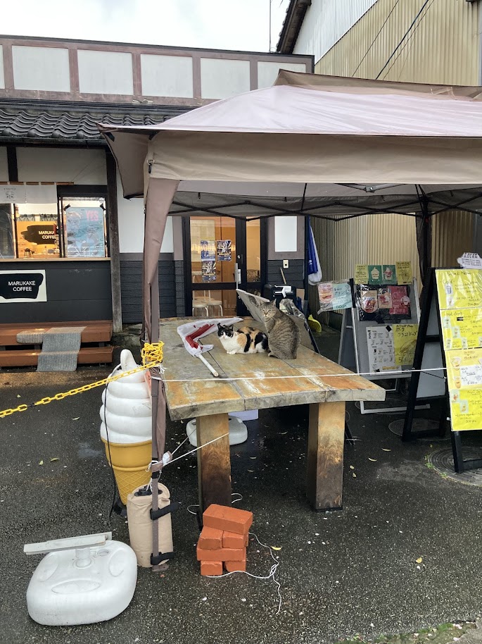 這一天下午大雨過後,商店街的貓咪們也外出玩耍跟遊客見面