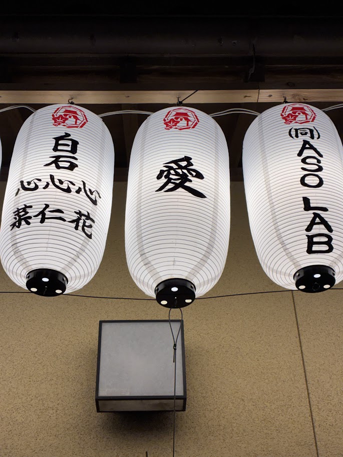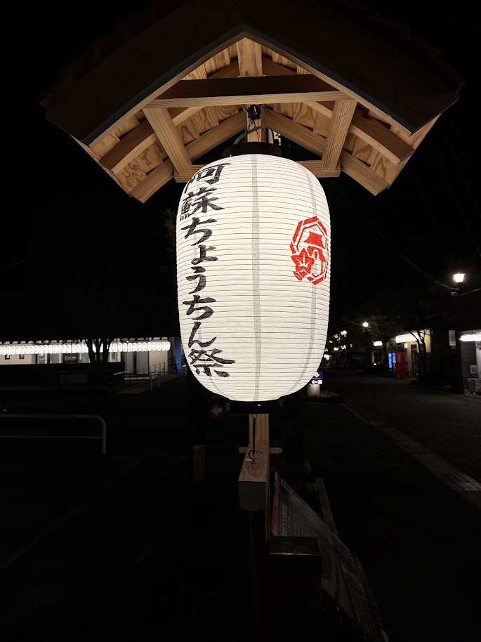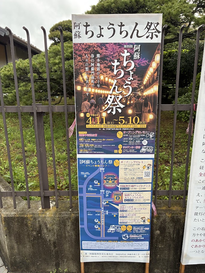 為了記念這個重要時刻,人們集資在神社旁的阿蘇門前町商店街掛上許多提燈(ちょうちん)