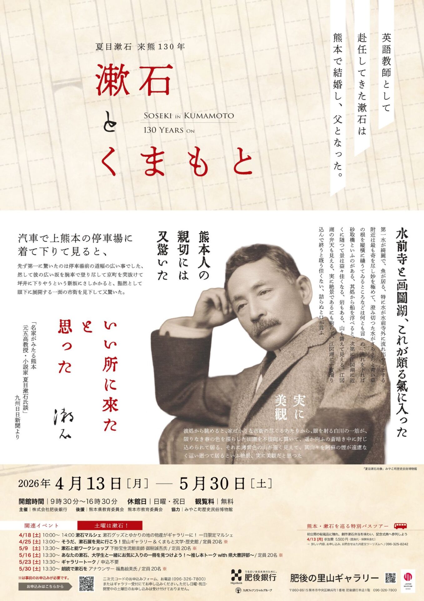今年(2026年)4月13日,適逢夏目漱石來到熊本130週年紀念