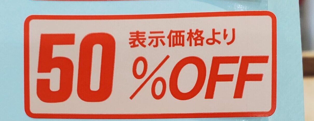 特別是在大量進貨時,偶爾還會出現驚喜的半價殺必死サービス「50% OFF」貼紙
