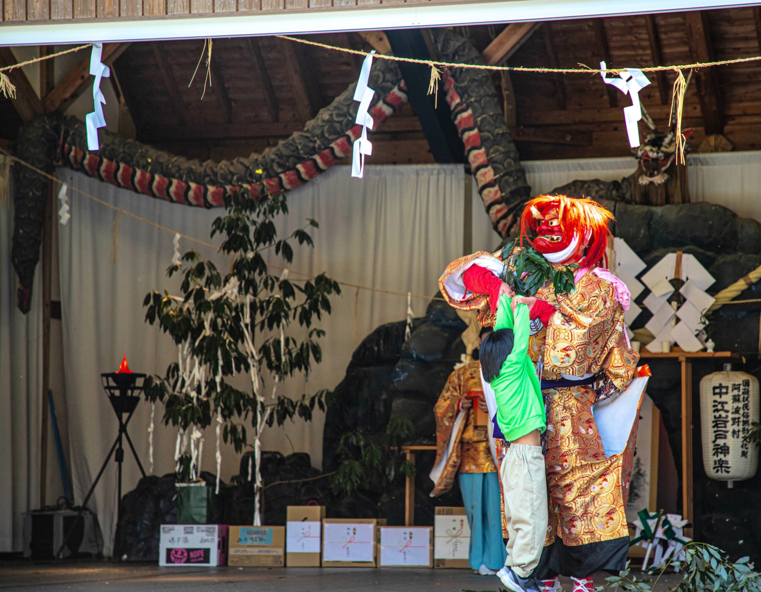 中江岩戶神樂除了傳統神話舞碼外,也穿插如「運動會」等趣味演出與觀眾進行互動.