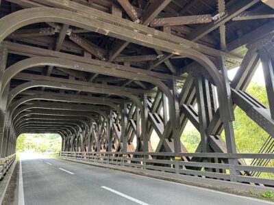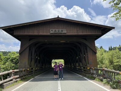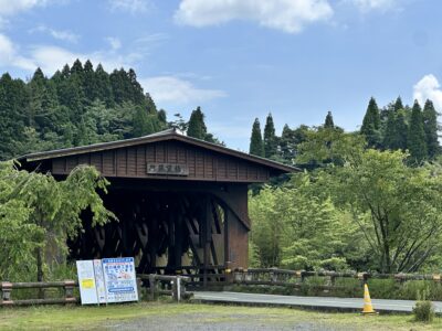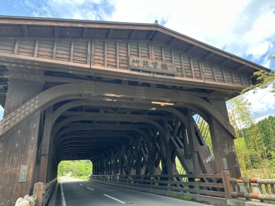 This wooden bridge may seem simple at first glance, but it’s quite special — Japan’s first ever wooden bridge designed with both a car lane and a roof. Completed in 1999, the bridge is approximately 40 meters long and 7 meters wide, constructed using traditional materials like cedar and cypress in a clean, minimalist Japanese style.